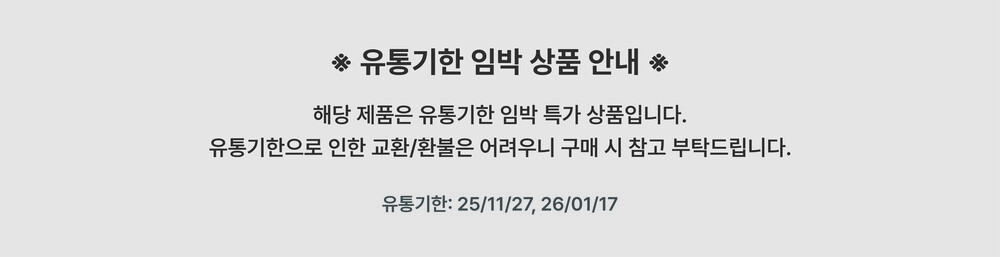 - 상품 하자, 오배송의 경우 수령일로부터 7일 이내 고객센터 접수 후 교환∙반품이 가능합니다. (교환/반품비 무료)
