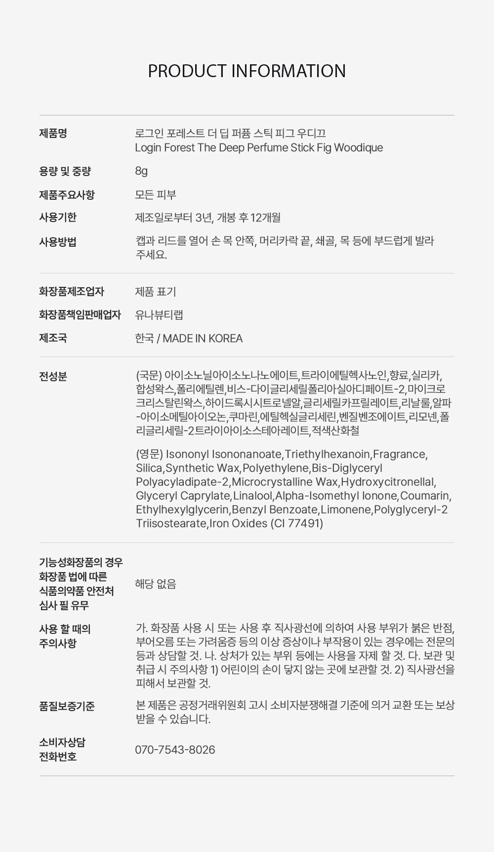 로그인 포레스트 더 딥 퍼퓸 스틱 피그 우디끄